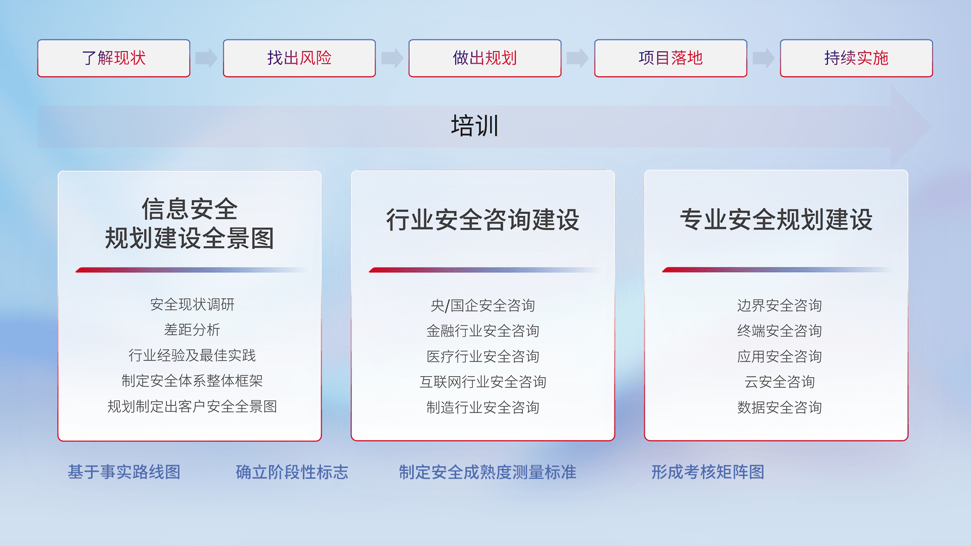 梳理客户信息安全现状调研、、、差距分析结果,,,结合行业先进经验及最佳实践,,,制订客户的信息安全管控体系总结架构,,,,最终形成一个完整的客户信息安全规划与建设的全景图。。。