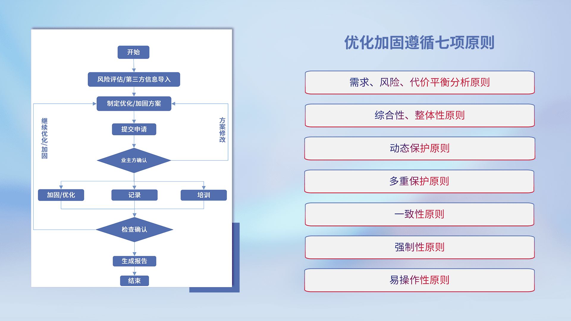 最大程度利用现有资产,,,,对评估发现的问题进行封堵与整改,,,,防止漏洞被利用,,,,提升整体网络安全性,,,,为客户带来高标准的优化加固服务。。